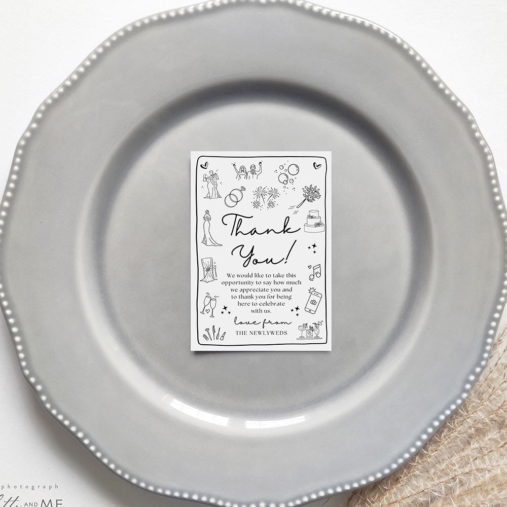 2.9x4.1" Use these thank you cards on place settings or with wedding favours. Printed on smooth white card.