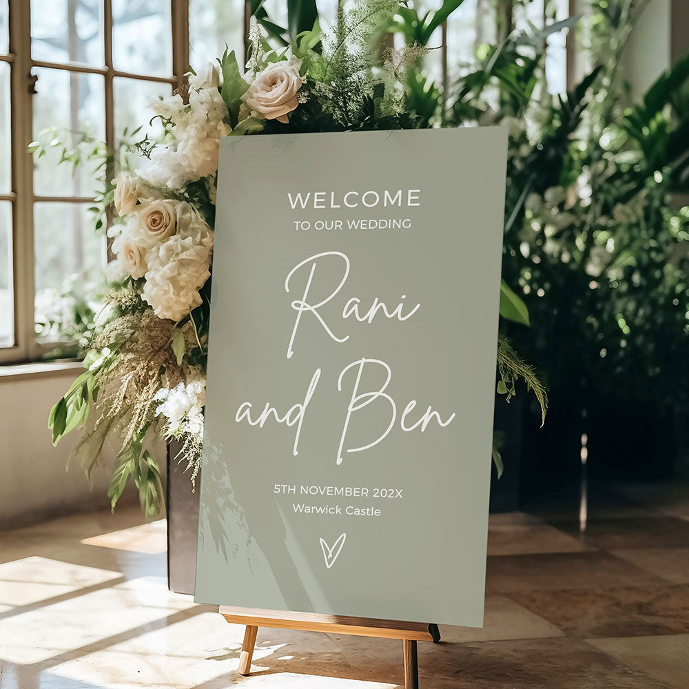 These welcome sign rigid foam boards come in three sizes. Other foam board colours available (see the colour chart, or request a custom colour).