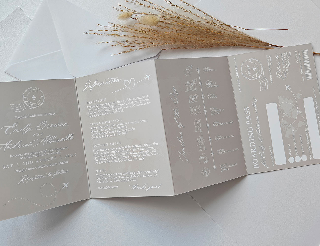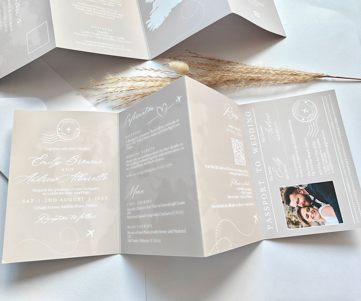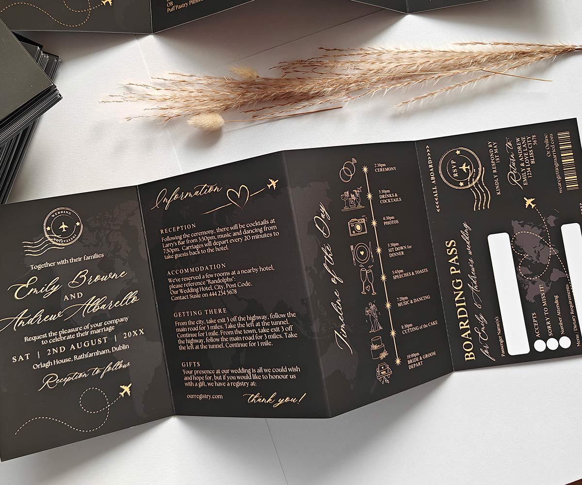 Fully personalised to include all your wedding details, these stunning 5x7" gatefold wedding invitations include complimentary envelopes: